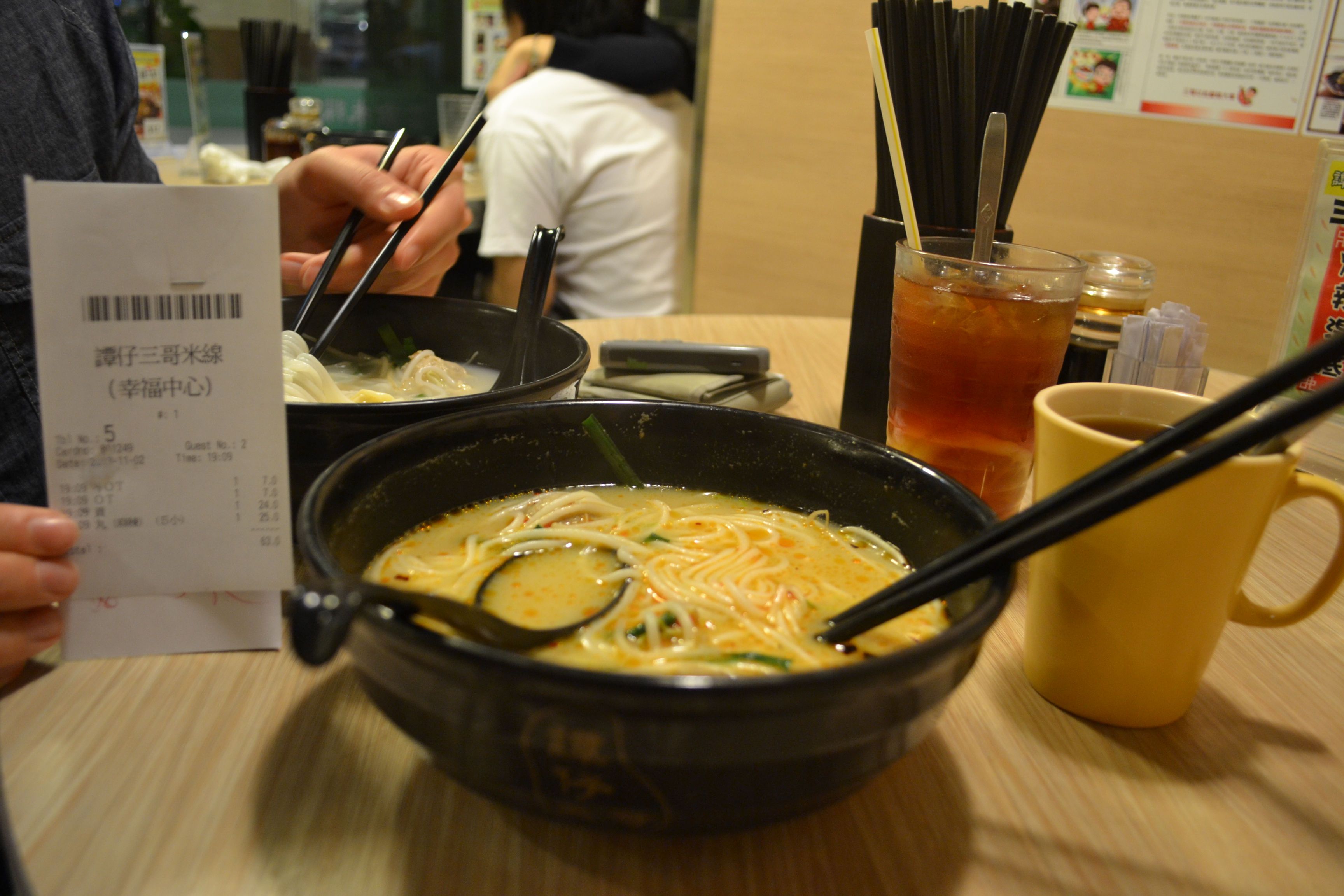 2 x Suppe mit Reisnudeln und Fleischbällchen ± 2 Getränke = 6,80€ und unglaublich lecker.