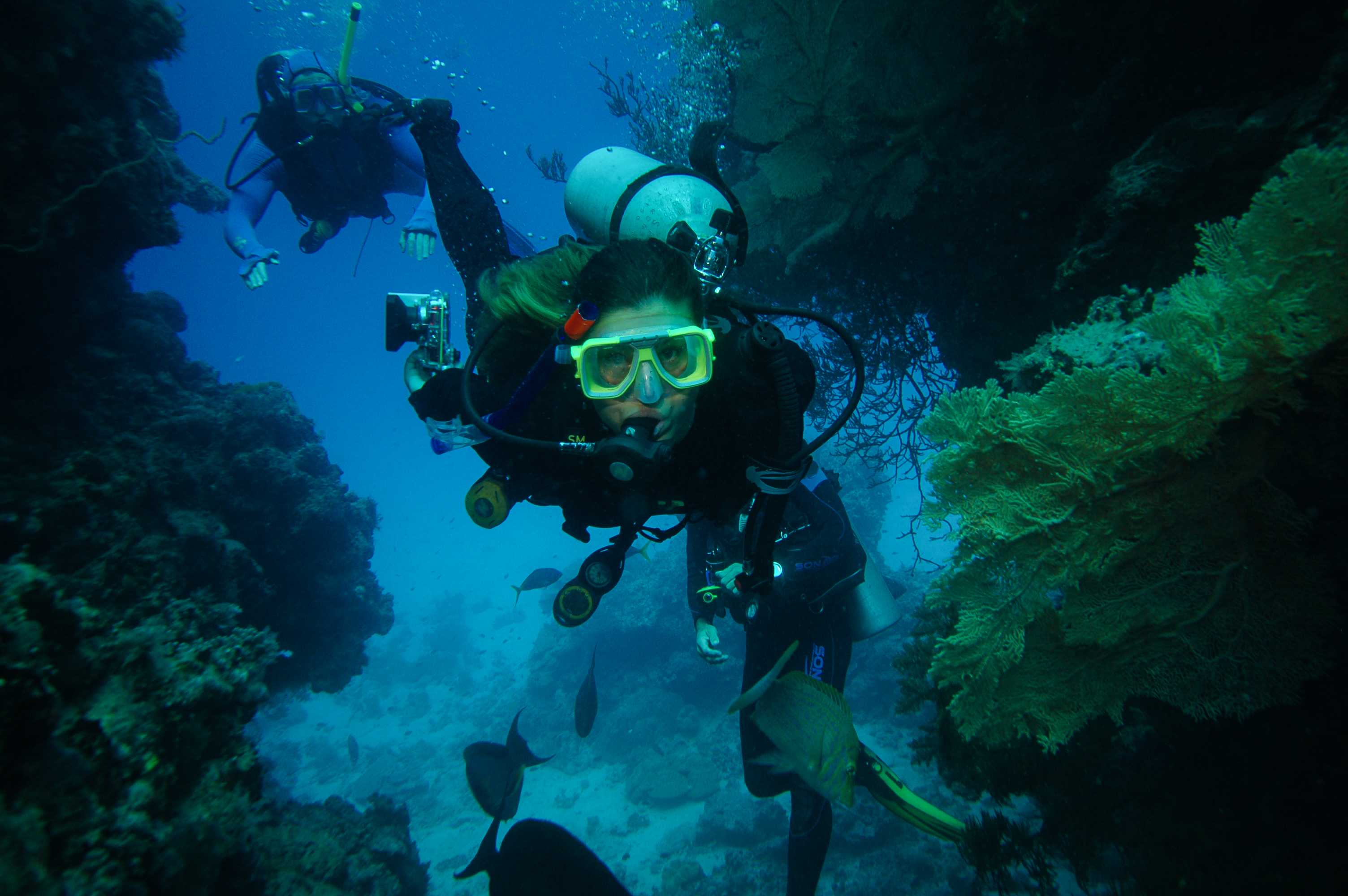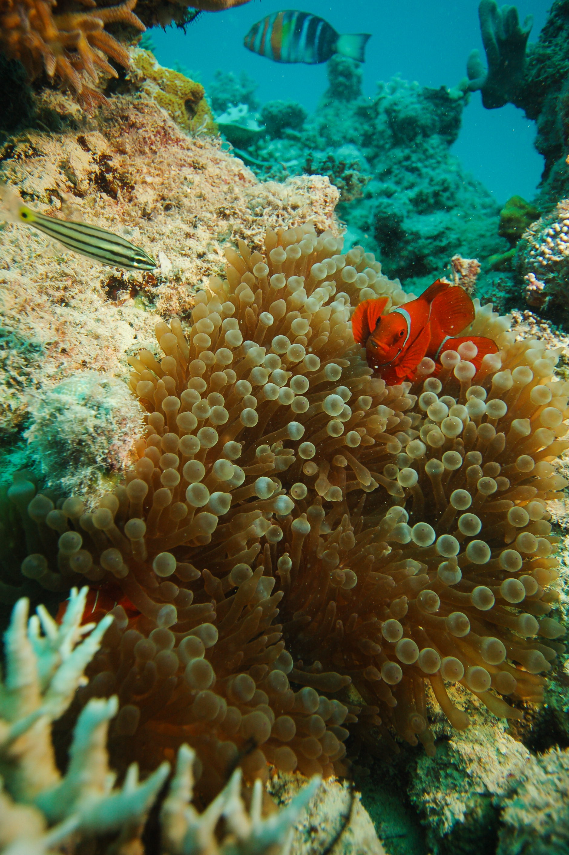 Hat man sich an die Atmung und den Druckausgleich (der Laura und mir ab einer gewissen Tiefe leider Probleme bereitete, besonders beim zweiten Tauchgang) gewöhnt, ist es ein tolles Gefühl. Besonders deutlich wird der Unterschied zwischen Schnorcheln und Tauchen – während man von oben beim Schnorcheln einige Fische schemenhaft tief unter sich sieht, bekommt man beim Tauchen ganz andere Einblicke – wir sahen u.a. einen riesigen Napoleonsfisch mit verletzter rechter Flosse. Nach einer insgesamt knapp zweistündigen Session (halbe Stunde tauchen, 90 mins schnorcheln) gab es Lunch – ziemlich basic und nicht allzu großzügig bemessen. Dann ging es direkt weiter mit der zweiten Session, dankenswerterweise hatten Laura und ich unseren Tauchlehrer Lee ganz für uns. Er nahm sich viel Zeit für uns, der introductory Quatsch unter Wasser fiel auch weg, die 30 AUD extra waren es wert. So führte er uns zwischen zwei Riffen durch, zeigte uns den Touri-Liebling Clownsfisch „Nemo“ und auch einen Stingray sollten wir sehen. Leider konnten wir wegen unserer Ohren nicht so tief tauchen, wie er uns hätte führen wollen – wir müssen also nach weiterer Übung nochmal wiederkommen 🙂 trotzdem war es eine tolle Erfahrung, wir sahen die buntesten Fische (Laura auch eine Schildkröte) und auch die Korallen an sich waren sehr interessant anzuschauen.