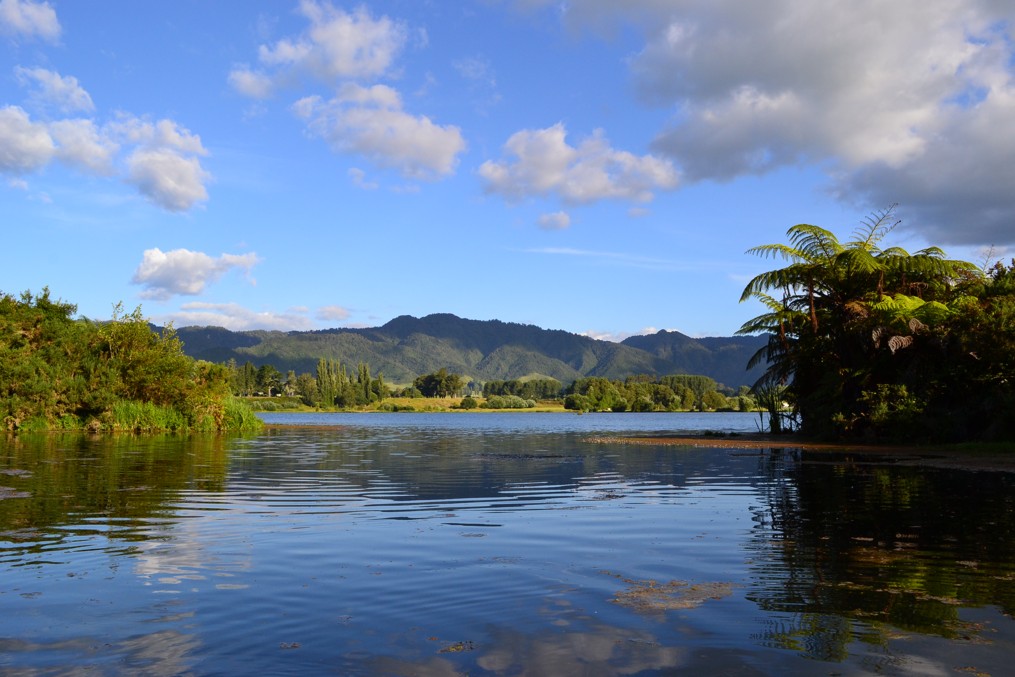 Im Anschluss ging es im Bus weiter in Richtung Galatea, auf dem Weg dorthin stieg John zu uns in den Bus. Nach den Erfahrungen des Vortages waren wir relativ skeptisch, doch diese Skepsis war unbegründet. Mit viel Ehrlichkeit erzählte uns John von seiner uns umgebenden Heimat, immer wieder hielt der Bus und wir schauten uns auch den Staudamm an, der Lake Aniwhenua – unseren heutigen Übernachtungsstopp –  überhaupt entstehen ließ. Auch von den Problemen mit den Aalen erzählte er – ähnlich wie Lachse leben sie in Seen, ziehen aber zum Laichen ins Meer. Die jungen Aale ziehen dann wieder stromaufwärts. Dies gestaltet sich aber durch die Dämme als schwierig, weswegen es eine Petition gibt – mit dem Ziel, Aaltreppen in die Dämme einzubauen. Ich gab John und später auch seiner Nichte Nadine, der jungen und engagierten Besitzerin der Lodge, in der wir die Nacht verbrachten, den Tipp, selbige auch online zu stellen und empfahl auch gleich einige Homepages.