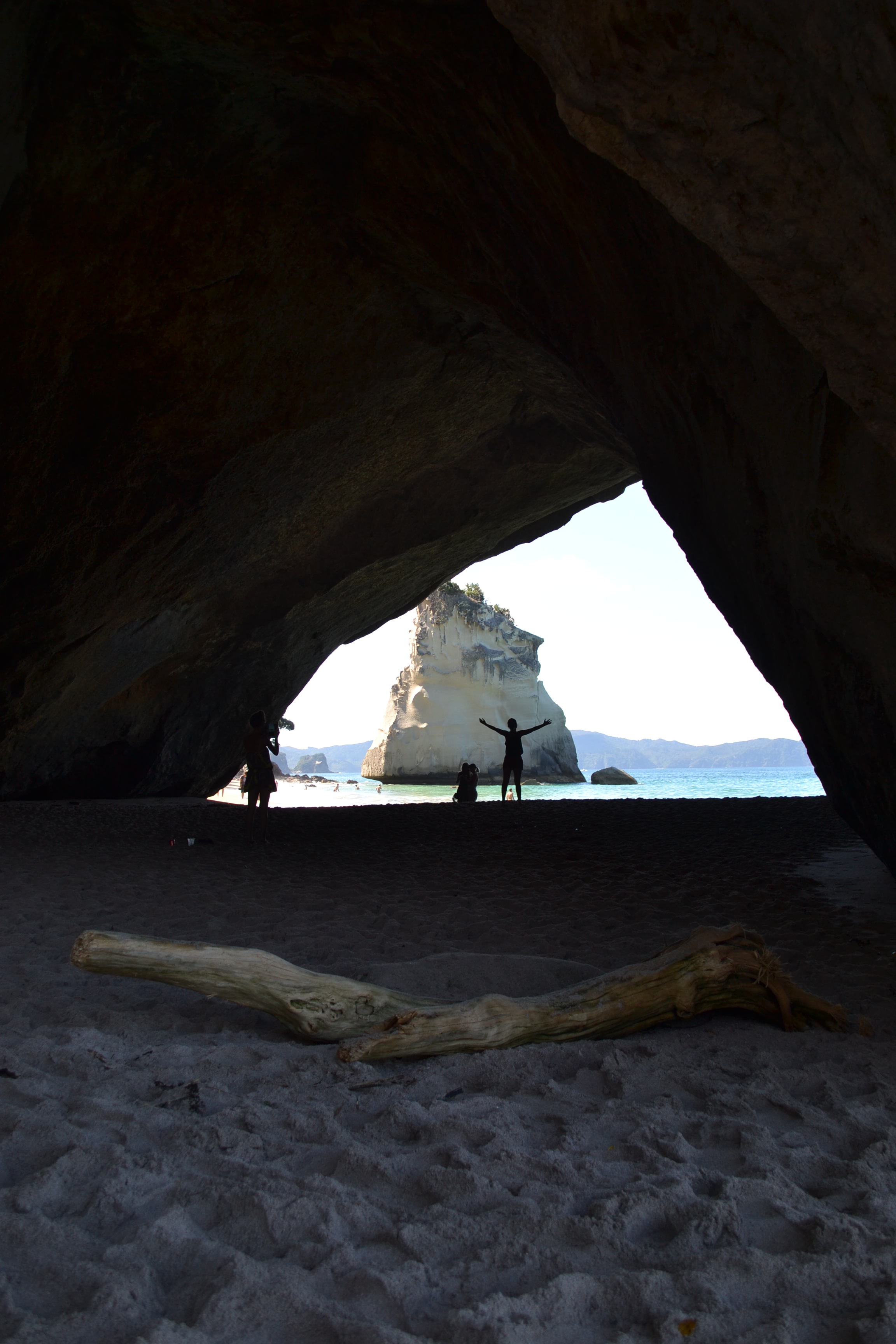 Auch landschaftlich bot der Tag einiges – eine spektakuläre Aussicht zum Lunch, danach der Besuch am Hot Water Beach, wo man sich dank thermischer Aktivitäten eine kleine (und teilweise ziemlich heiße) Badewanne buddeln kann oder einfach in die Fluten hüpft und schließlich Cathedral Cove, eine beeindruckende Höhlenformation am Strand.