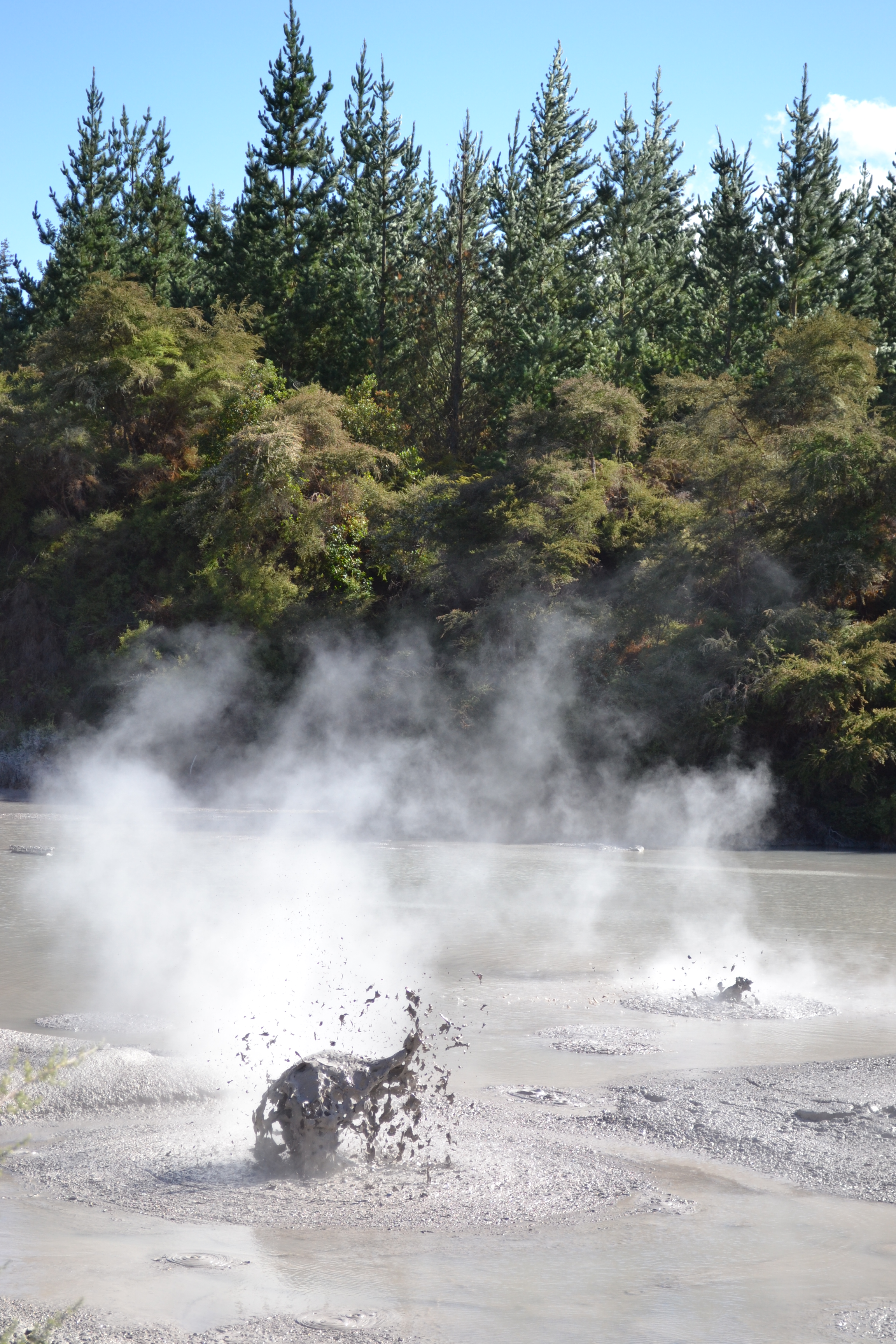Heute ging es erst spät los, ich nutzte die morgens gewonnene Zeit für eine schnelle Fitnesseinheit. Es gab French Toast zum Frühstück, um 9 Uhr fuhren wir nach Rotorua. Hier nutzten wir die freie Zeit für einen Spaziergang durch die öffentlichen Parks, in denen zahlreiche heiße, nach Schwefel stinkende Quellen und Schlammpools aktiv sind und an vielen Stellen Dampf aus der Erde aufsteigt – Rotorua ist ein thermisch sehr aktiver Ort.