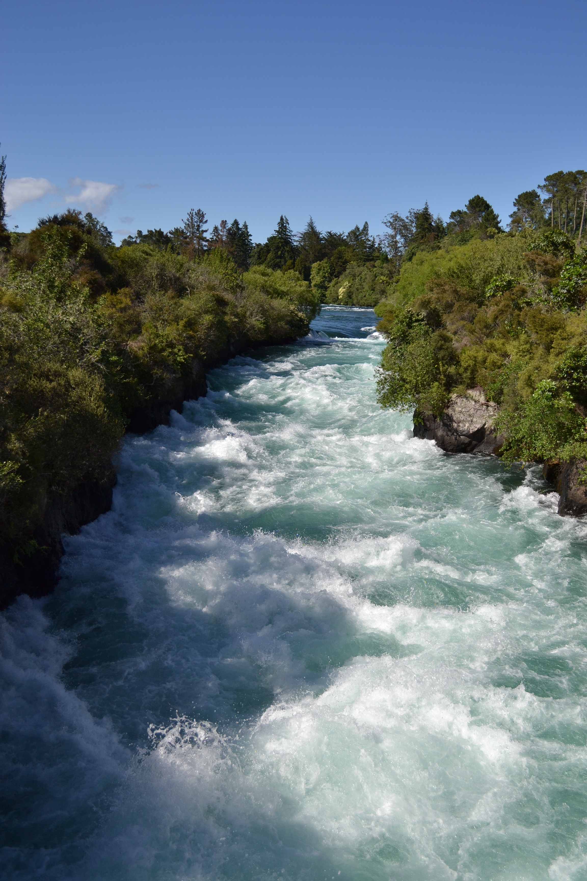 Weiter ging der wilde Ritt – besonders auf unserer Tour über die Nordinsel prasselten dank zahlreicher One Night Stops viele Eindrücke auf einen ein. Wir besuchten auf der Fahrt nach Taupo mit dem gleichnamigen größten Lake Neuseelands die Huka Falls. Hier schießt das Wasser mit ungeheurer Wucht durch einen schmalen Canyon. Ob der enormen Kräfte des Flusses verändert sich das Flussbett stetig und die Huka Falls selbst wandern langsam, aber stetig den Fluss hinauf.