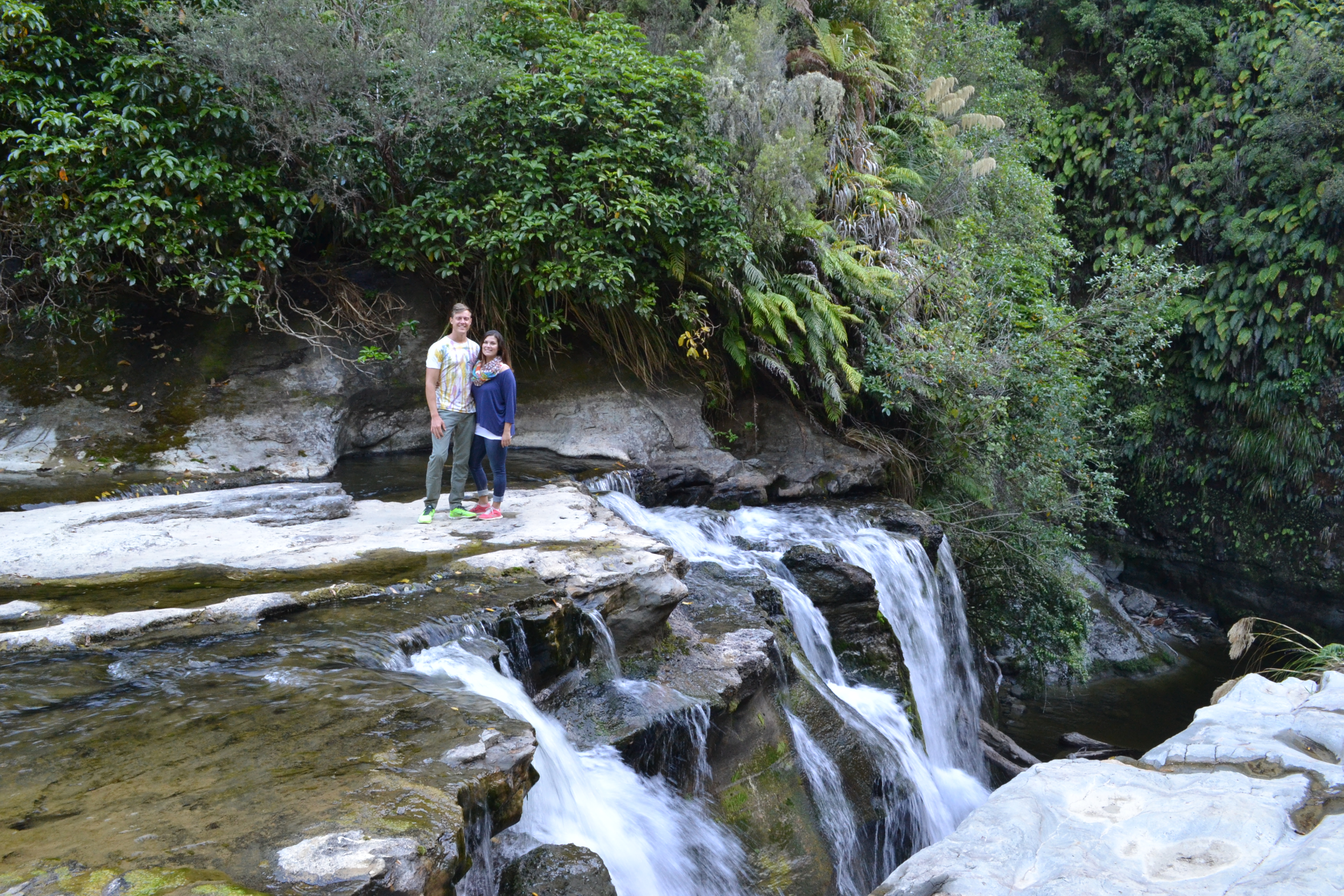 Heute ging es um 7.30 Uhr los – unser erster Halt war Paeroa, von hier stammt das neuseeländische Nationalgetränk L(emon)&P(aeroa). Mittlerweile fest in Coca Cola-Hand, wie ein Blick auf die Flasche verrät, ein wenig Sprite-ähnlich und ziemlich lecker, wenn man auf Softdrinks steht. Unseren Lunchbreak hatten wir an den Bridal Veil Falls, einem sehr hohen und schönen Wasserfall, der mit etwas Phantasie tatsächlich an einen Brautschleier erinnert.