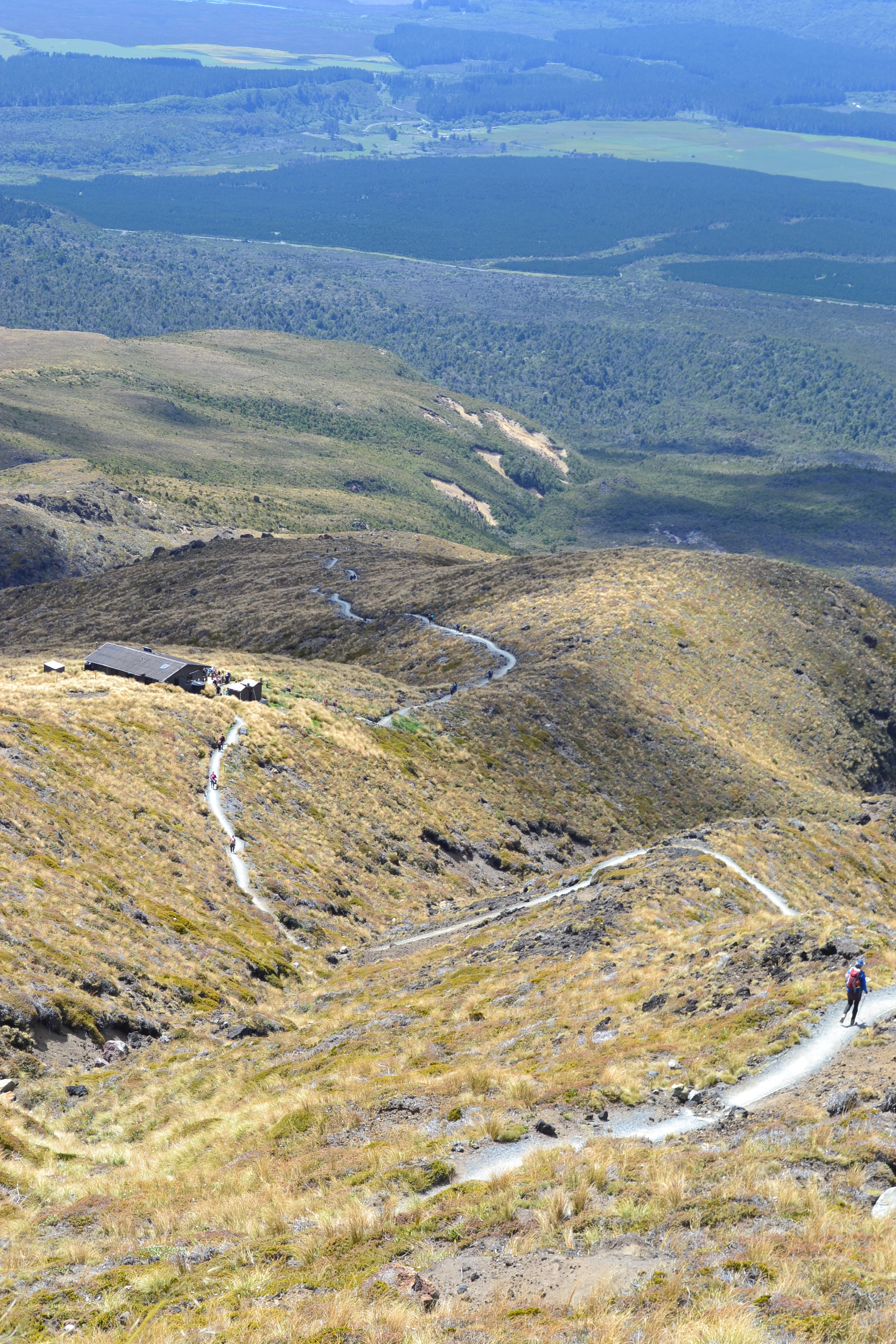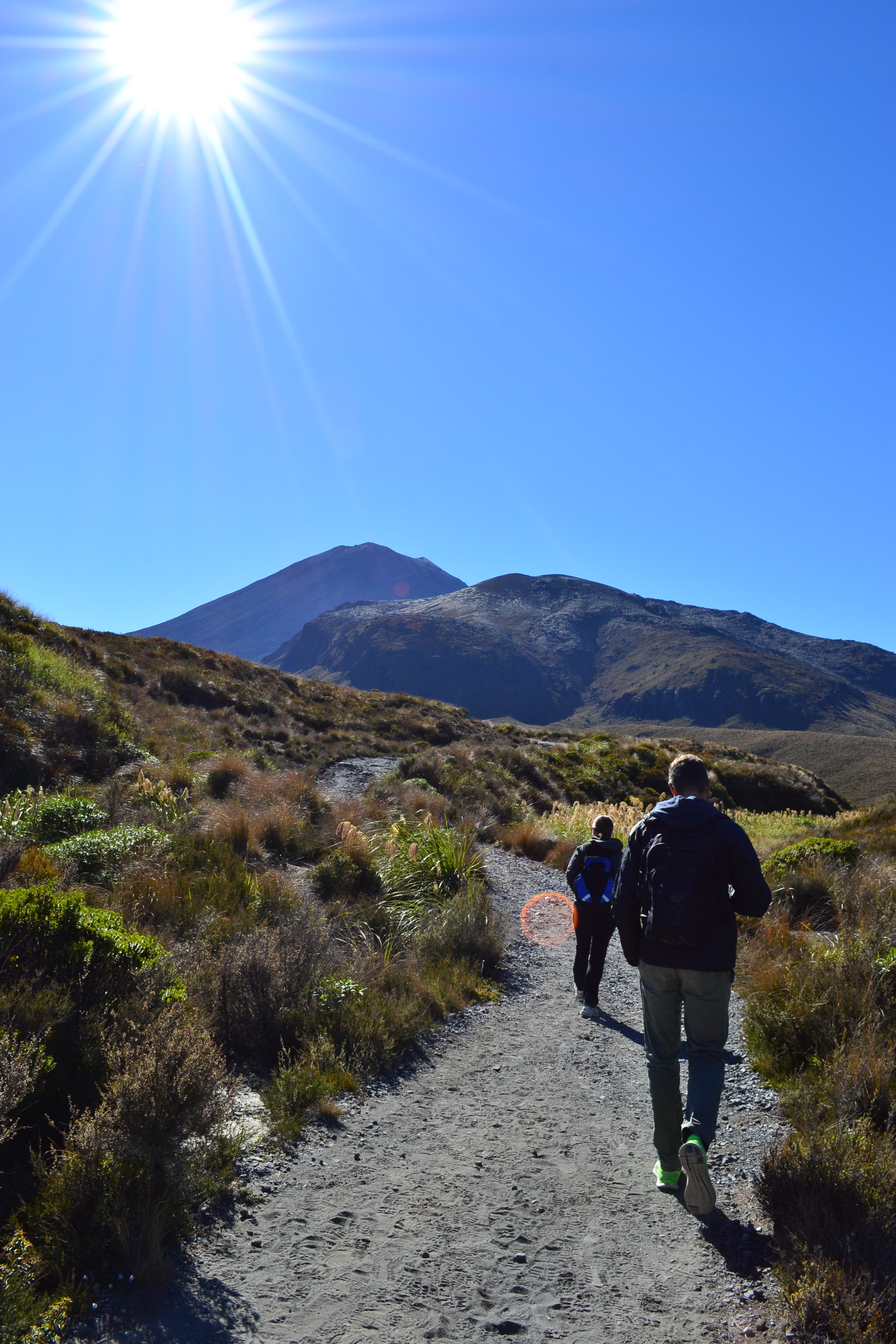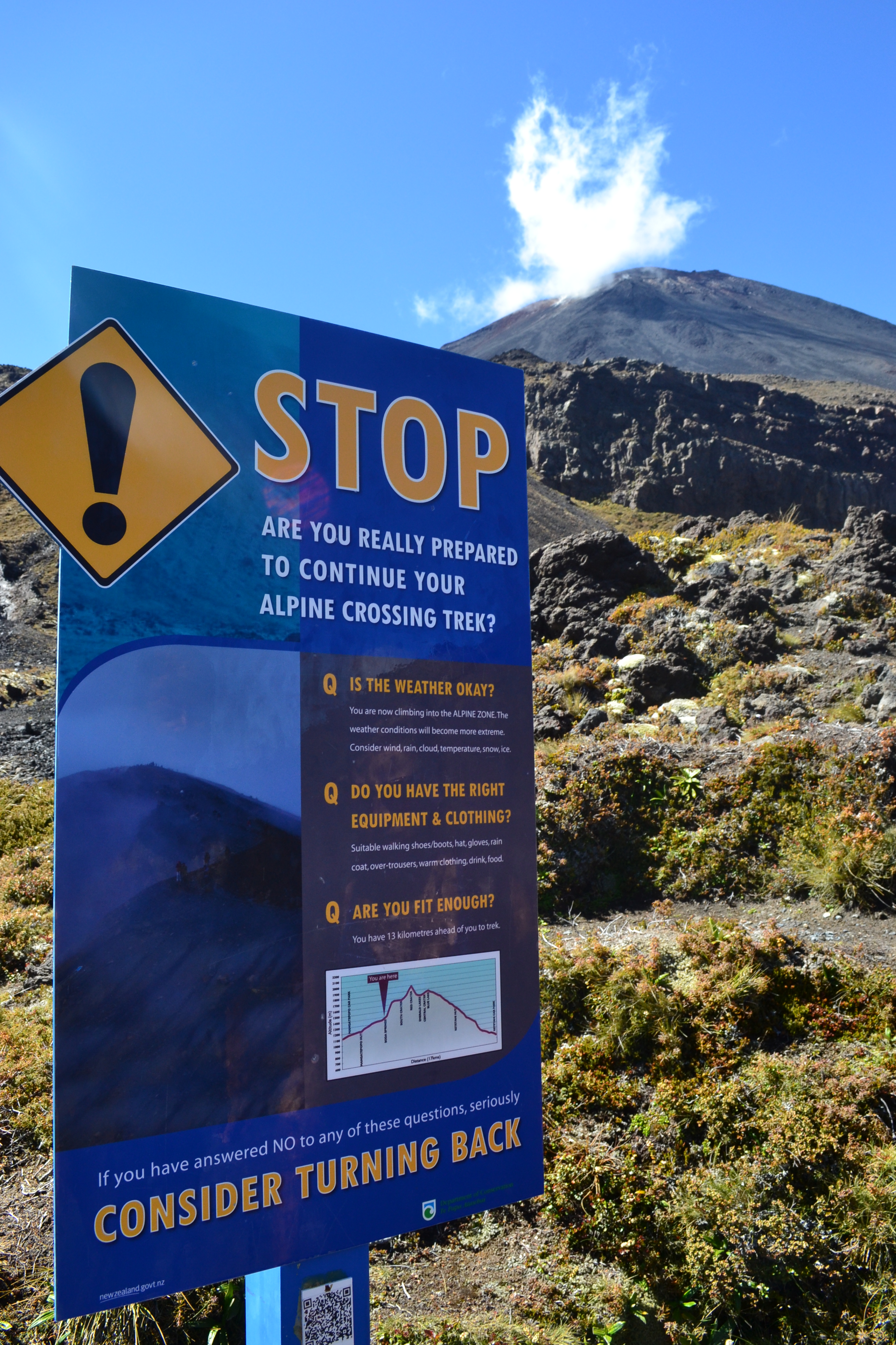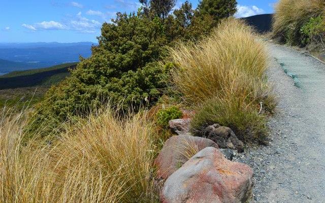Die ersten Kilometer schlängelte sich ein gut begehbarer Fußweg leicht ansteigend durch das Gelände, doch das sollte sich bald ändern. Spätestens am Devil’s Staircase änderte sich nach vorherigem Warnschild a la „Stop! Ab hier beginnt ein alpiner Wanderweg!“ der Schwierigkeitsgrad enorm. Zunächst folgten Treppen, die nicht aufhören wollten, später ging es durch einen Krater, immer am Fuße des beeindruckenden Mt. Ngauruhoe lang.