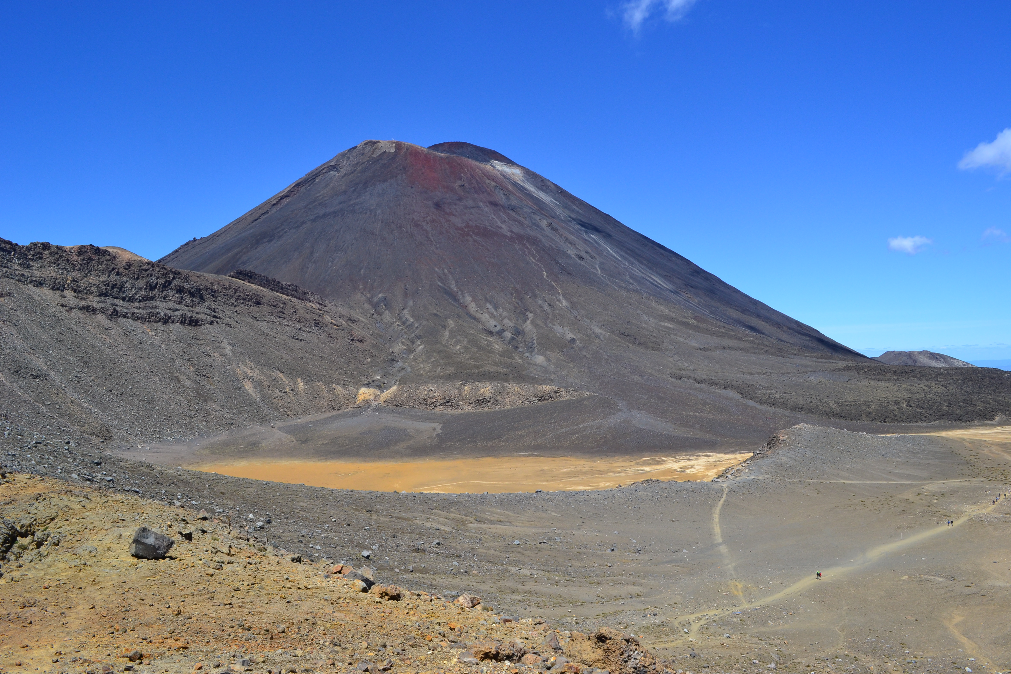 Mt Ngauruhoe oder auch als Mt Doom aus „Herr der Ringe“ bekannt. Der Wanderweg am Fusse führt durch einen nicht mehr aktiven Krater.