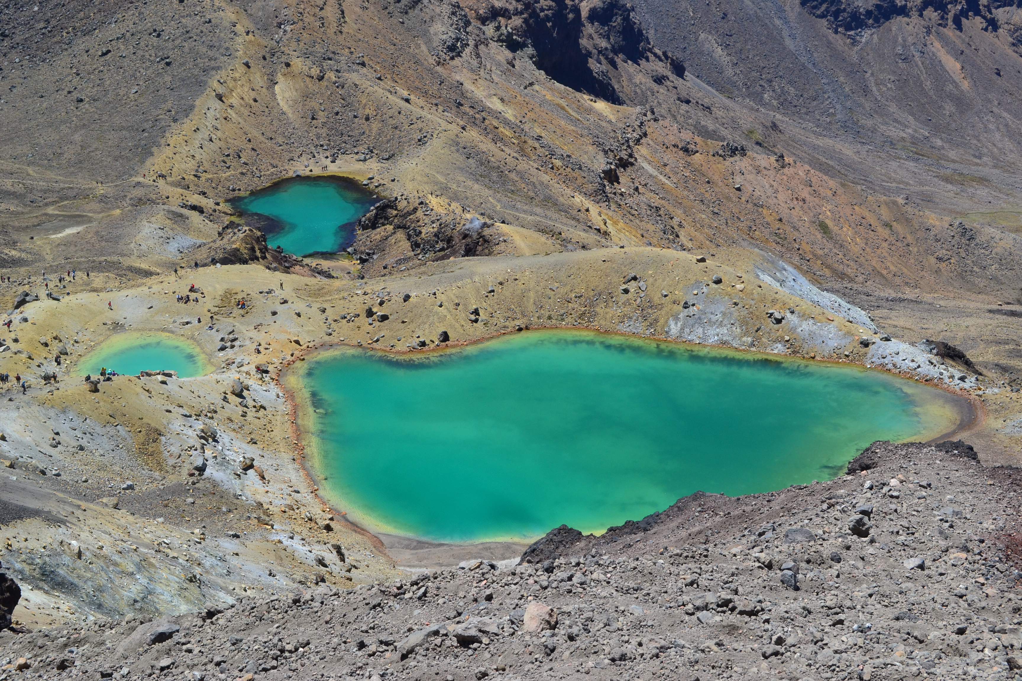 Um fünf Uhr klingelte der Wecker, wir machten uns auf den Weg in alpine Höhen. Nach dem Durchchecken unseres Equipments durch einen Experten / Geschäftsmann, der sowohl Lauras als auch meine Ausrüstung abnickte (mit einiger Skepsis bezüglich unserer Nike Frees) waren wir um kurz nach 9 Uhr am Beginn des Tongariro Crossing. Den ganzen Tag über sahen wir kaum Wolken, trotz allem war es dank eines steten Windes nicht sonderlich warm – optimale Bedingungen. Unsere Gruppe bestand neben Laura und mir noch aus Stephi, mit der wir die Eindrücke des Tages teilten.