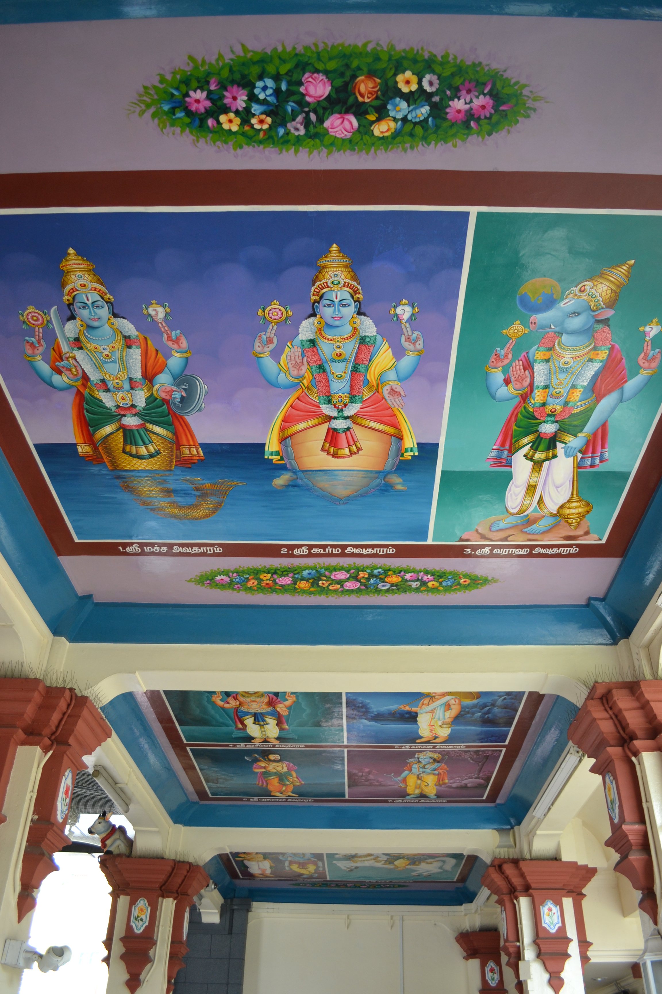Die farbenfrohen Bemalungen im hinduistischen Tempel.