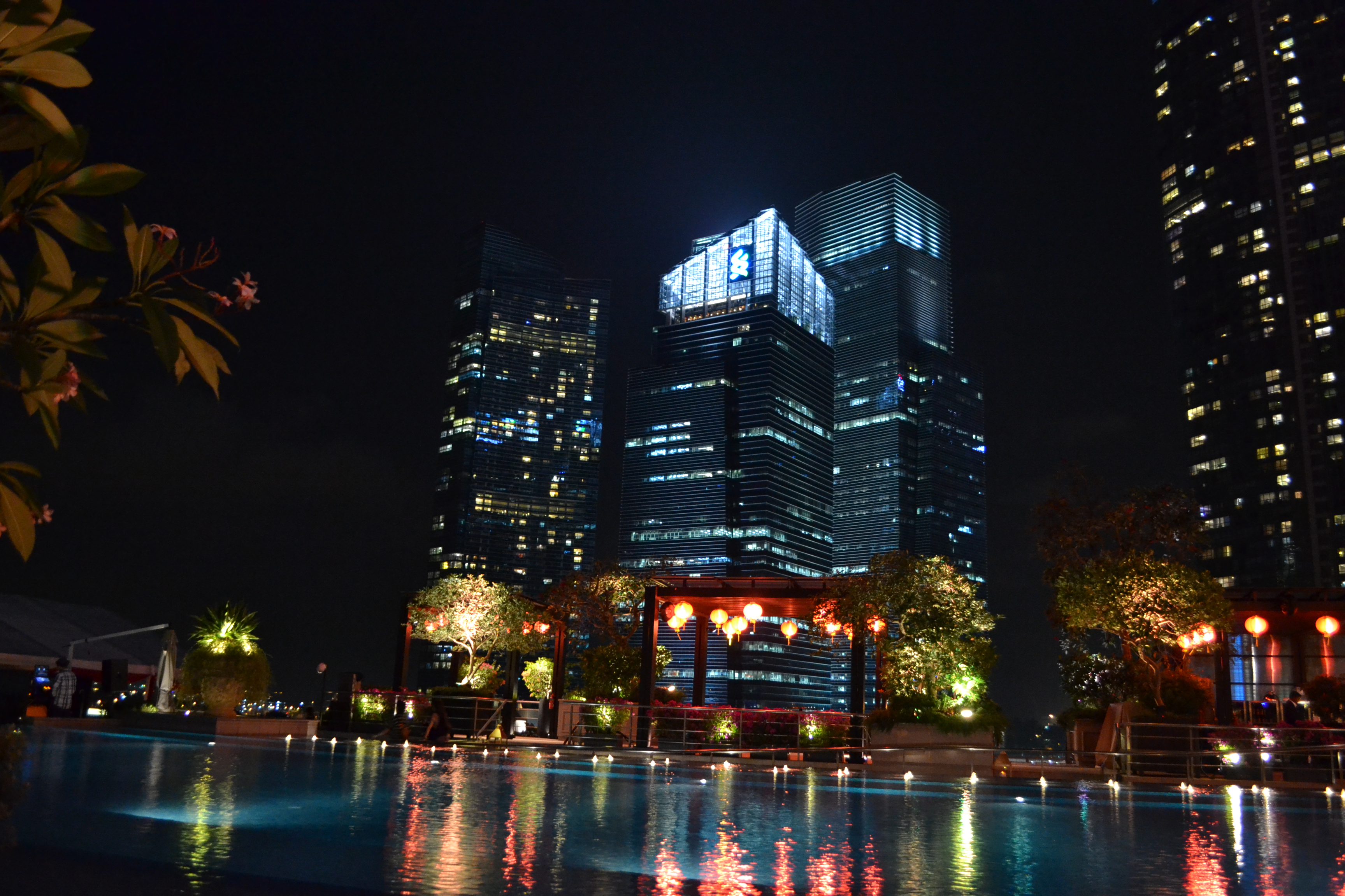 Der Pool und die Bar des Fullerton Bay Hotels. Eine tolle Kulisse für die imposante Lasershow: