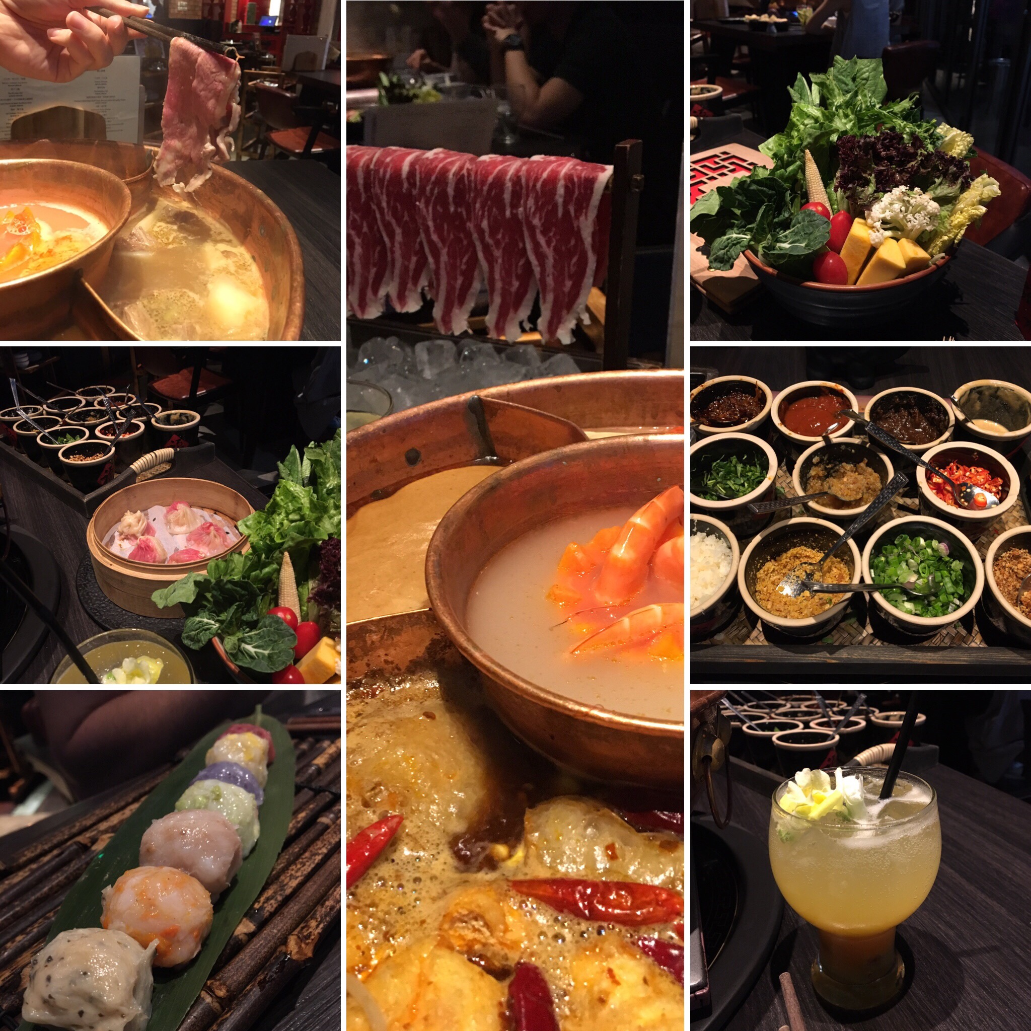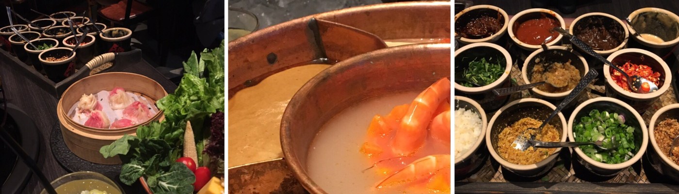 Auch den berühmten Hot Pot wollten wir endlich mal ausprobieren – Laura brannte schon seit unserer Ankunft darauf. Hierbei kommt ein Kessel mit verschiedenen Suppen / Brühen in die Mitte des Tisches, daneben steht gehackter Knoblauch, Chili-Schoten und andere Gewürze in Bottichen. Wir entschieden uns für eine scharfe Tofusuppe, Hummersuppe, Gemüsesuppe, Sataysuppe und eine Garnelensuppe, die in einer Papaya in der Mitte thronte und vor dem Übergießen mit Brühe zunächst spektakulär flambiert wurde. Nun kann man je nach Gusto Fleisch, Fisch, Gemüse und / oder Pilze bestellen, diese Zutaten werden dann – ähnlich wie beim Fondue – für einige Sekunden in die Suppe gehalten und fertig ist das Geschmackserlebnis. Je nach Würze der Brühe entwickelt sich auch der Geschmack der Einlage und wie ihr merkt, ist es sehr einfach und man kann mit der Schlemmerei gut den ganzen Abend füllen. Nachdem die Kellnerin uns ein wenig bremste (in unserer Euphorie wollten wir für zwei Personen doch ganz schön reichlich bestellen), verbrachten wir im Drunken Pot einen entspannten Abend.